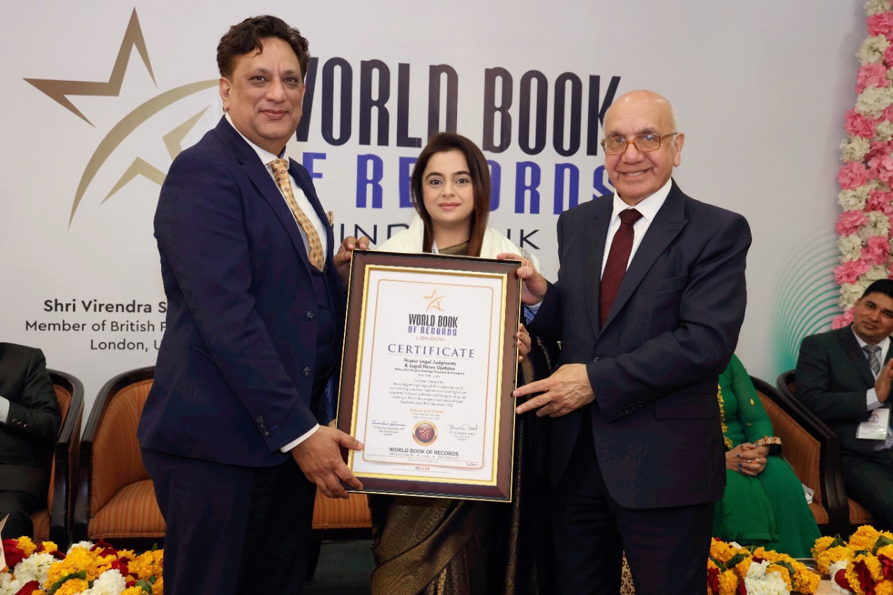 नई दिल्ली, 15जनवरी। नारी शक्ति एक नई पहल फ़ाउंडेशन की फाउंडर एवं सुप्रीम कोर्ट की अधिवक्ता डॉ नूपुर धमीजा ने क़ानून क्षेत्र का पहला वर्ल्ड रिकॉर्ड अपने नाम किया. उन्हें इंदौर में आयोजित 17बें प्रवासी भारतीय कार्यक्रम 2023 के दौरान इस रिकोर्ड से सम्मानित किया गया। उल्लेखनीय है कि उक्त कार्यक्रम का उद्घाटन प्रधानमंत्री नरेंद्र मोदी के हाथों किया गया था.