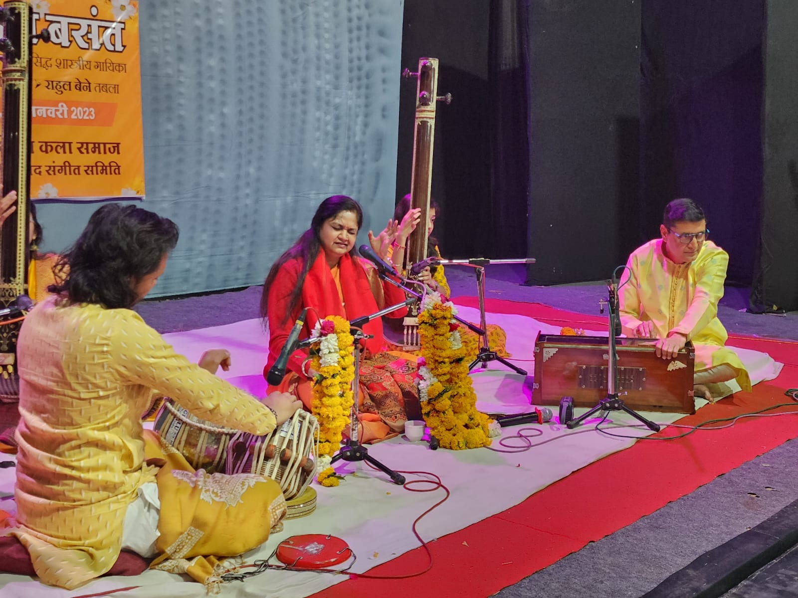 अपनी प्रस्तुति में उन्होंने सर्वप्रथम राग भिन्न षड्ज से अपनी प्रस्तुति की शुरुआत की तीन ताल निबद्ध पारंपरिक रचना ” उड़ जा रे कागा ” से प्रारंभ कर द्रुत तीन ताल में निबद्ध ” जा रे जा रे कागा ” यह प्रभावशाली बंदिश प्रस्तुत की। आपकी गायकी में सुर का लगाव तथा राग को समझाने का अंदाज खूब सराहा गया। दूसरी प्रस्तुति में स्वयं लिखी हुई रचना राग बसंत में प्रस्तुत की। इसके बोल थे ” ऋतु बसंत आयो आज ” ग्वालियर, जयपुर तथा इंदौर तीनों घराने की परंपरा को समृद्धिता से प्रस्तुत कर आपने श्रोताओं का मन मोह लिया। अंत में आपने मांड में मीराबाई का भजन “मैं गोविंद गुण गाऊ ” प्रस्तुत किया। आपके साथ हारमोनियम पर भरत जोशी ने उत्कृष्ट संगत की एवं तबले पर राहुल बेने ने प्रभावशाली संगत की। तानपुरे पर अश्विनी भावसार एवं ईशा सिंह गेहलोत ने संगत की।
