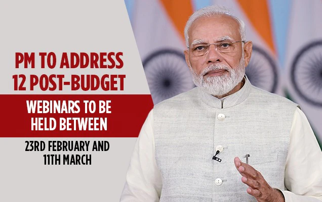 प्रधानमंत्री 23 फरवरी से लेकर 11 मार्च के बीच आयोजित किए जाने वाले 12 बजट उपरांत वेबिनार को संबोधित करेंगे