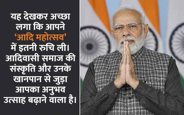 “यह देखकर अच्छा लगा कि आपने ‘आदि महोत्सव’ में इतनी रुचि ली। आदिवासी समाज की संस्कृति और उनके खानपान से जुड़ा आपका अनुभव उत्साह बढ़ाने वाला है।”
