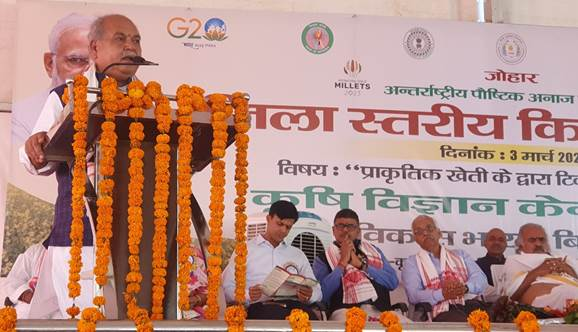 केंद्रीय कृषि मंत्री तोमर ने किसानों को सशक्त करने पर जोर देते हुए कहा कि किसान आगे बढ़ेगा तो देश आगे बढ़ेगा। उन्होंने प्रधानमंत्री की पहल पर संयुक्त राष्ट्र द्वारा घोषित अंतरराष्ट्रीय मिलेट वर्ष 2023 का जिक्र करते हुए कहा कि किसानों को इस दिशा में तेजी से प्रवृत्त होना चाहिए। झारखंड मिलेट (श्री अन्न) स्टेट रूप में दुनिया में जाना जाए, इस दिशा में राज्य सरकार को भी तेज प्रयास करना चाहिए।