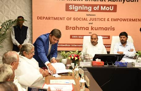 सामाजिक न्याय और अधिकारिता विभाग तथा ब्रह्मा कुमारी संस्थान के बीच नशा मुक्त भारत अभियान – एनएमबीए को और अधिक प्रभावी तथा और अधिक व्यापक बनाने के लिए समझौता ज्ञापन पर हस्ताक्षर किए गए