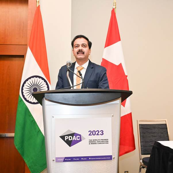 नई दिल्ली , 9मार्च।टोरंटो में आयोजित पीडीएसी-2023 सम्मेलन में मंगलवार को भारत दिवस मनाया गया। कार्यक्रम में खान मंत्रालय के सचिव विवेक भारद्वाज, मंत्रालय के वरिष्ठ अधिकारी, भारत के महावाणिज्य दूतावास, टोरंटो, कनाडा और कोयला मंत्रालय तथा सी.आई.आई. के अधिकारी शामिल हुए।