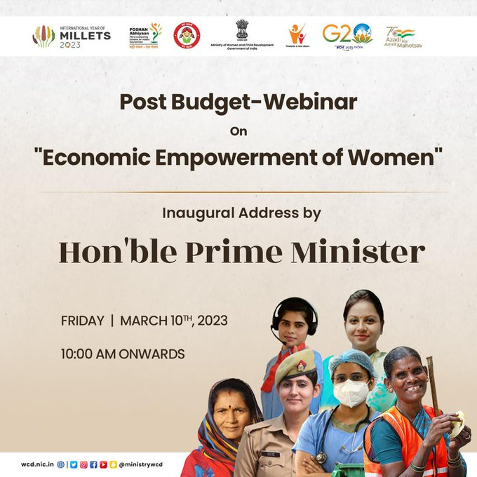 Hon'ble Prime Minister to address the inaugural session of Post Budget Webinar on "Economic Empowerment of Women" on 10th March 2023”