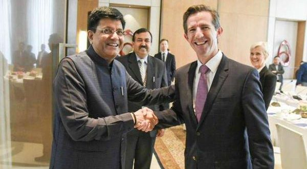 नई दिल्ली ,13 मार्च।केंद्रीय वाणिज्य और उद्योग मंत्री पीयूष गोयल और ऑस्ट्रेलिया के व्यापार और पर्यटन मंत्री सीनेटर डॉन फैरेल ने द्विपक्षीय आर्थिक संबंधों को और प्रगाढ़ बनाने के लिए अगले कदमों पर चर्चा करने के लिए मुलाकात की।