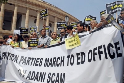 सड़क से संसद तक गरमाया अडानी मुद्दा,केंद्र को घेरने के लिए बुधवार को 17 विपक्षी दलों ने संयुक्त तौर पर संसद भवन से ईडी दफ्तर तक मार्च निकाला
