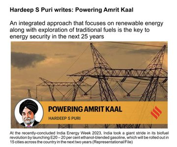 Union Minister @HardeepSPuri articulates how renewable energy along with traditional fuels is the key to India's energy security in Amrit Kaal… Do read! https://t.co/htvQpSDlwJ