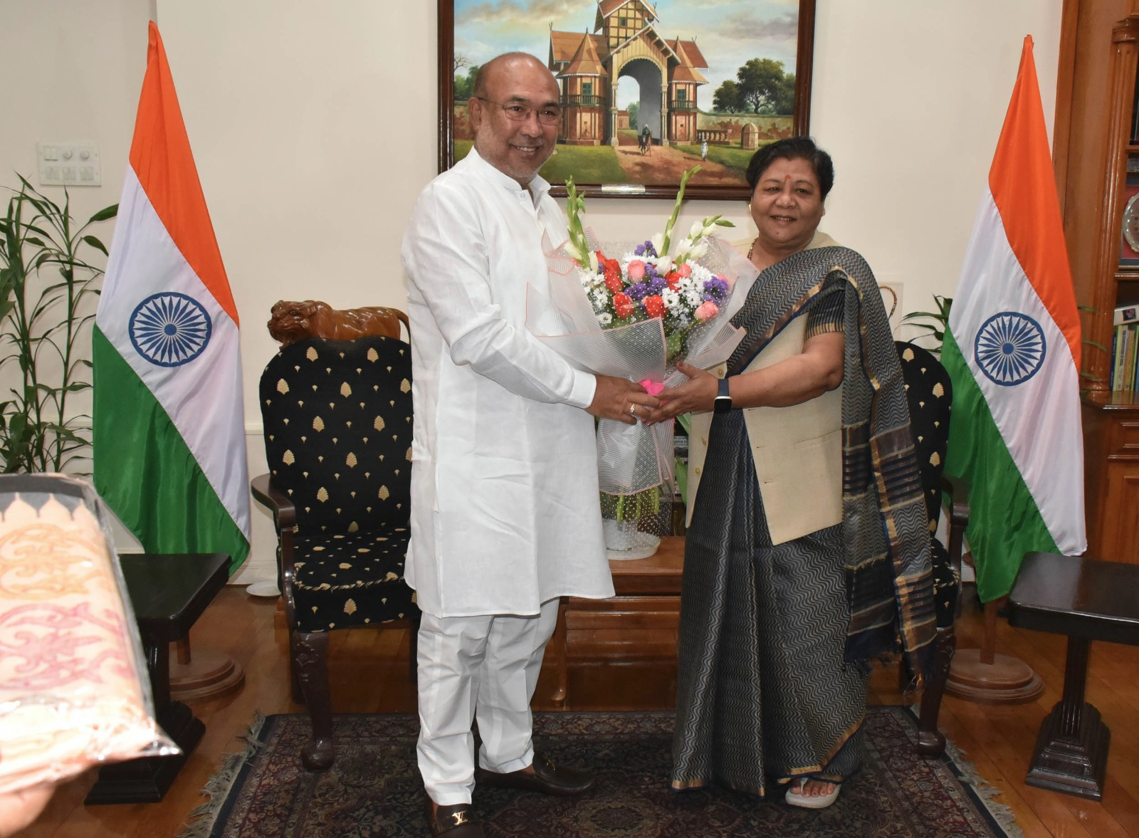 इंफाल, 20 मार्च।मणिपुर राज्यपाल माननीय अनुसुईया उइके से प्रदेश के मुख्यमंत्री एन बीरेन सिंह ने राजभवन में मुलाकात की। यह मुलाकात काफी सकारात्मक रहीं, जिसमें प्रदेश की स्थिति, समस्याओं, सुधार के उपायों पर व्यापक एवं गहन चर्चा हुई। मुख्यमंत्री ने सरकार द्वारा किये जा रहे कार्यो की प्रगति से अवगत कराया। इस भेंट में राज्यपाल एवं मुख्यमंत्री ने भेंट का आदान प्रदान भी किया। साथ ही मणिपुर का दिनॉंक 22 मार्च आगामी नववर्ष की शुभकामनाएं दी और प्रदेश और उसके नागरिकों के उज्जवल भविष्य की कामना की।