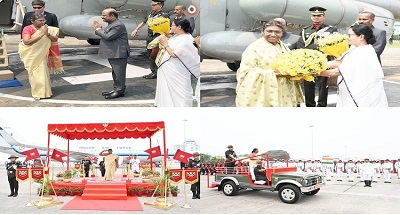 नई दिल्ली, 27 मार्च। राष्ट्रपति द्रौपदी मुर्मू दो दिन के सरकारी दौरे पर आज सुबह कोलकाता पहुंचीं। पश्चिम बंगाल के राज्यपाल डॉ. सी वी आनंद बोस, राज्य नगरपालिका मामले और शहरी विकास मंत्री फरहाद हकीम, अग्निशमन के राज्य प्रभारी मंत्री सुजीत बोसु, मुख्य सचिव हरिकृष्ण द्विवेदी और राज्य के पुलिस महानिदेशक मनोज मालवीय ने उनकी अगवानी की। इसके बाद राष्ट्रपति को हवाई अड्डे पर तीनों भारतीय रक्षा बलों और राज्य पुलिस की ओर से औपचारिक गार्ड ऑफ ऑनर दिया गया। बाद में श्रीमती मुर्मू को हेलीकॉप्टर से शहर लाया गया और पश्चिम बंगाल की मुख्यमंत्री सुश्री ममता बनर्जी और राज्यपाल डॉ. सी वी आनंद बोस ने आरसीटीसी हेलीपैड ग्राउंड, कोलकाता मैदान में उनकी अगवानी की। राष्ट्रपति ने महान भारतीय स्वतंत्रता सेनानी नेताजी सुभाष चंद्र बोस को पुष्पांजलि अर्पित करने के लिए नेताजी भवन का दौरा किया। राष्ट्रपति महान कवि रवींद्रनाथ टैगोर को श्रद्धांजलि अर्पित करने उनके जन्म स्थान जोरासांको भी जाएंगी। पश्चिम बंगाल सरकार श्रीमती मुर्मू का नागरिक अभिनंदन करेगी। भारत की राष्ट्रपति बनने के बाद श्रीमती मुर्मू की पश्चिम बंगाल की यह पहली यात्रा है।