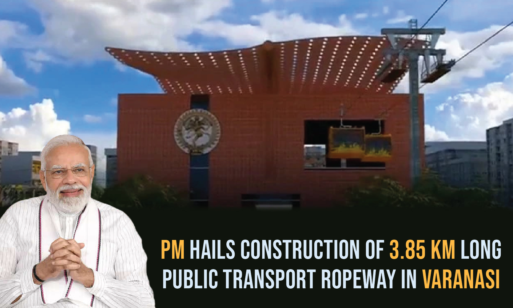 नई दिल्ली, 29 मार्च। प्रधानमंत्री ने वाराणसी में 644 करोड़ रुपये की लागत से 3.85 किलोमीटर लंबे सार्वजनिक परिवहन रोपवे के निर्माण की सराहना की है।