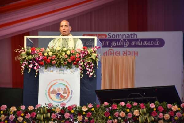 सौराष्ट्र और तमिलनाडु के बीच के सांस्कृतिक जुड़ाव के बारे में बोलते हुए, राजनाथ सिंह ने कहा कि ये संबंध एक हजार साल से भी अधिक पुराने हैं। उन्होंने कहा, “सौराष्ट्र पर ग्यारहवीं शताब्दी के आसपास विदेशी आक्रमणकारियों द्वारा कई बार हमला किया गया था। यह वह दौर था जब सौराष्ट्र से बड़ी संख्या में लोग दक्षिण भारत की ओर पलायन कर गए थे। उस दौरान तमिलनाडु के लोगों ने उनका स्वागत किया और उन्हें एक नया जीवन शुरू करने में मदद की।” उन्होंने सौराष्ट्र और तमिलनाडु के बीच सदियों पुराने जुड़ाव के कई उदाहरण दिए और इसे एकीकृत भारत के सुनहरे अध्यायों में से एक बताया।
