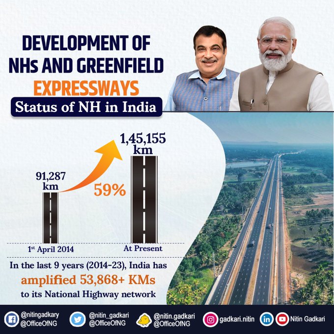 “बुनियादी ढांचे से जुड़े सभी क्षेत्रों में पिछले 9 वर्ष परिवर्तनकारी रहे हैं। बेहतर सड़क संपर्क ने अर्थव्यवस्था के अन्य महत्वपूर्ण क्षेत्रों को बहुत मजबूत किया है।”