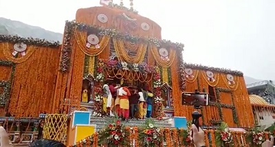 नई दिल्ली, 27अप्रैल। उत्तराखंड में श्री बद्रीनाथ धाम के कपाट आज सुबह सात बजकर दस मिनट पर श्रद्धालुओं के लिए खोल दिये गये। वैदिक मंत्रोच्चार के बीच विधि विधान से बद्रीनाथ धाम के कपाट खोलने की प्रक्रिया पूरी हुई। इस अवसर पर मंदिरों को फूलों से सजाया गया। मंदिर के पुजारियों ने प्रारंभिक पूजा संपन्न की। कपाट खोले जाने से पहले बद्रीनाथ धाम में बर्फबारी भी शुरू हो गयी। इस बीच बड़ी संख्या में श्रद्धालु भगवान बद्रीनाथ के दर्शन और पूजन के लिए वहां पहुंचे हैं।