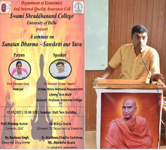 स्वामी श्रद्धानंद कॉलेज अर्थशास्त्र विभाग द्वारा "सनातन धर्म संस्कृति और युवा" विषय पर सेमिनार का आयोजन