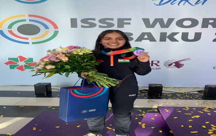नई दिल्ली, 14मई। अजरबैजान के बाकू में विश्व कप निशानेबाजी में हृदय हजारिका और नैंसी मंदोत्रा ने 10 मीटर एयर राइफल स्पर्धा में रजत पदक जीत लिया है। 21 वर्षीय हजारिका और 19 वर्षीय नैन्सी का यह पहला विश्व कप पदक है। हजारिका ने फाइनल में 251.9 स्कोर किया। जालान पेक्लर 252.4 स्कोर के साथ शीर्ष पर रहे। नैन्सी मंधोत्रा ने फाइनल में 253.3 का स्कोर कर रजत पदक हासिल किया। इन दो पदकों के साथ, विश्व कप में भारत की संख्या चार हो गई।