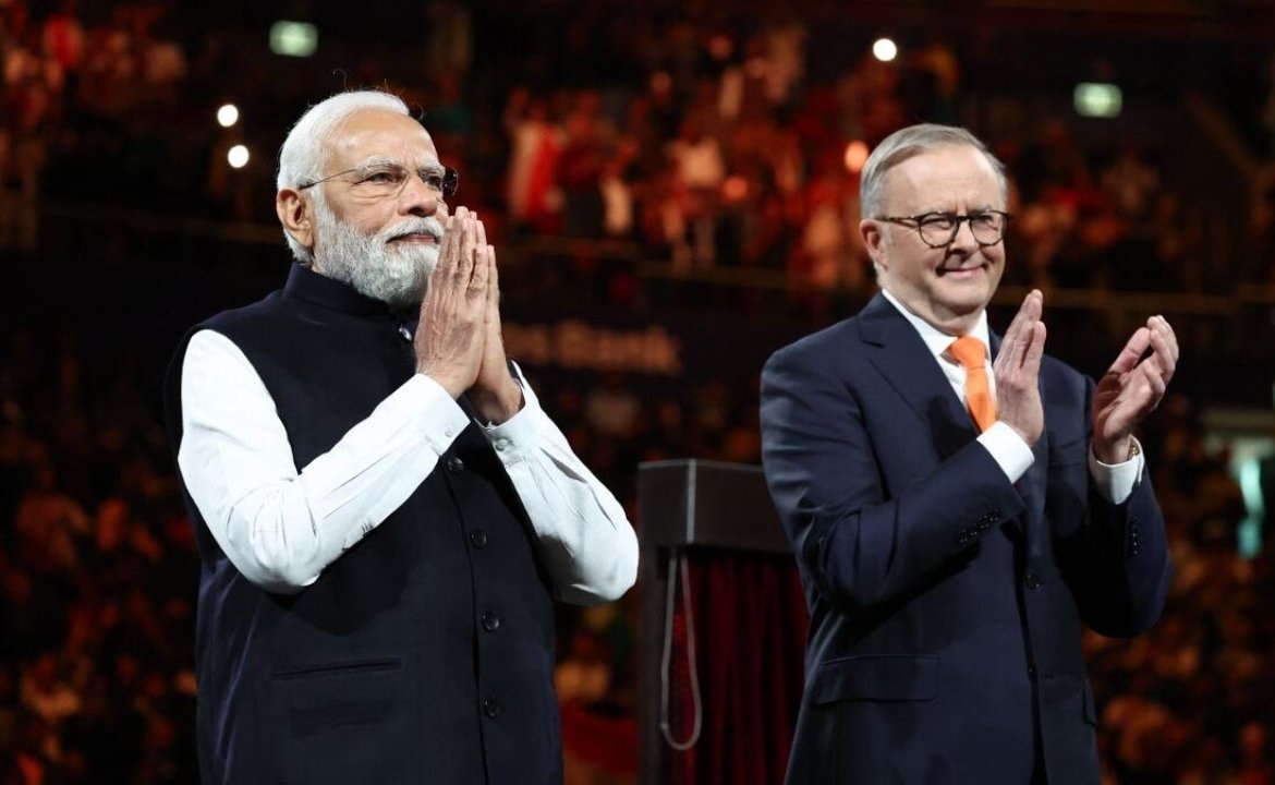 सिडनी में कुडोस बैंक एरेना पहुंचे पीएम मोदी का अल्बानीज के साथ जोरदार स्वागत किया गया। पीएम मोदी ने दोनों देशों के बीच संबंधों के बारे में बात की और लोग बार-बार उनकी टिप्पणियों का समर्थन कर रहे थे।