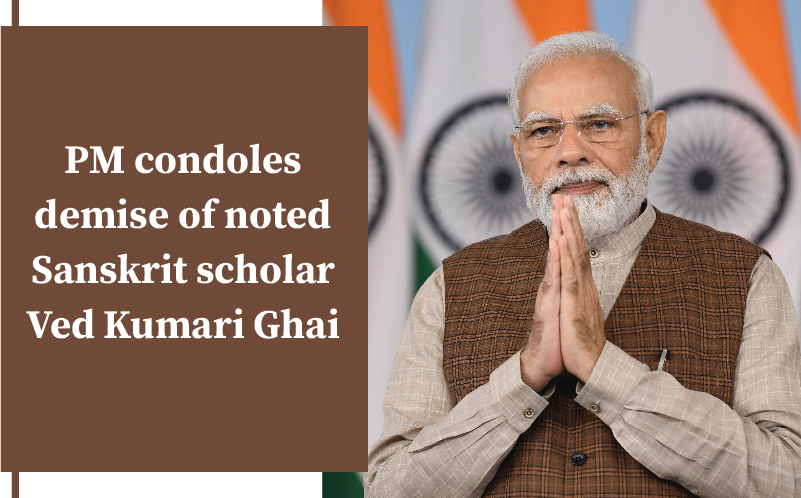 नई दिल्ली, 31 मई। प्रधानमंत्री नरेन्द्र मोदी ने प्रख्यात संस्कृत विद्वान वेद कुमारी घई के निधन पर गहरा दु:ख व्यक्त किया है।