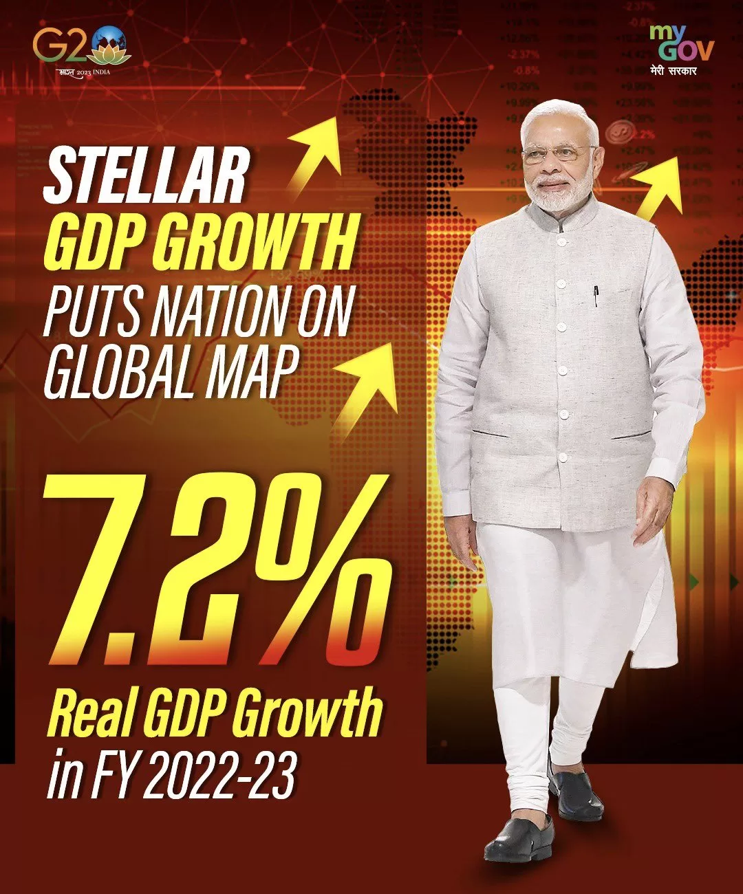“2022-23 जीडीपी वृद्धि के आंकड़े वैश्विक चुनौतियों के बीच भारतीय अर्थव्यवस्था की सहनशीलता को रेखांकित करते हैं। मोटे तौर पर व्यापक आशावाद और वृहद-अर्थव्यवस्था के स्पष्ट संकेतकों के साथ यह मजबूत प्रदर्शन, हमारी अर्थव्यवस्था के आशाजनक विकास-ग्राफ और हमारे लोगों की दृढ़ता का उदाहरण है।”