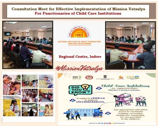एनआईपीसीसीडी ने इंदौर में ‘मिशन वात्सल्य के प्रावधानों के अंतर्गत’ विषय पर बाल-देखभाल संस्थानों के पदाधिकारियों की परामर्श बैठक की आयोजित