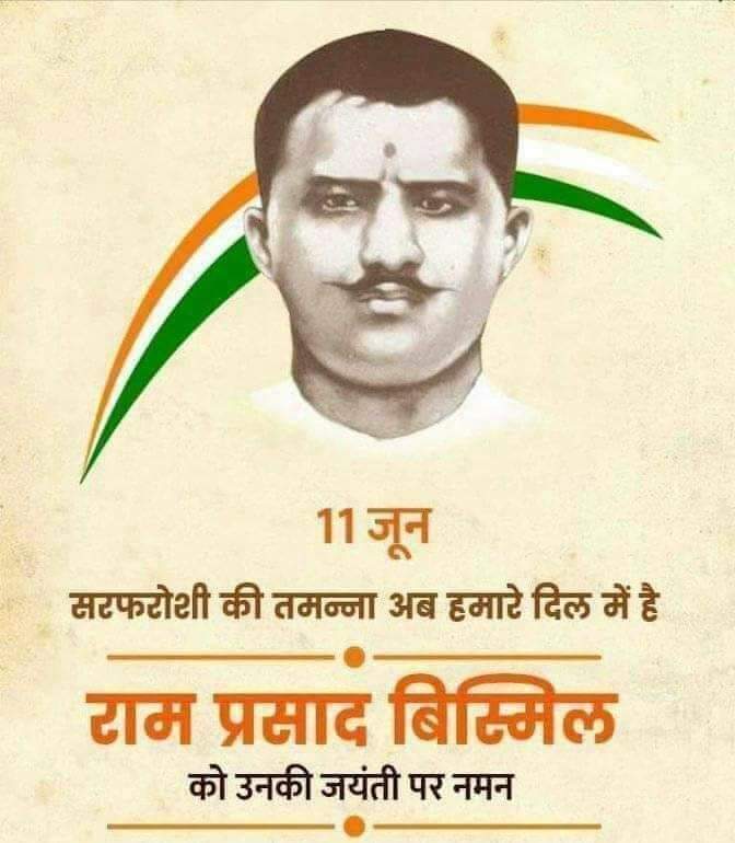 नई दिल्ली, 11जून। पंडित रामप्रसाद का जन्म 11 जून, 1897 को शाहजहाँपुर, उत्तर प्रदेश में हुआ था। इनके पिता श्री मुरलीधर शाहजहाँपुर नगरपालिका में कर्मचारी थे; पर आगे चलकर उन्होंने नौकरी छोड़कर निजी व्यापार शुरू कर दिया। रामप्रसाद जी बचपन से महर्षि दयानन्द तथा आर्य समाज से बहुत प्रभावित थे। शिक्षा के साथ साथ वे यज्ञ, सन्ध्या वन्दन, प्रार्थना आदि भी नियमित रूप से करते थे।
