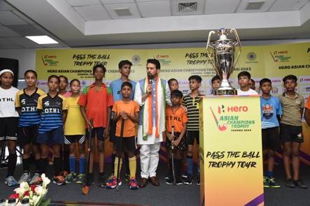 केंद्रीय खेल मंत्री अनुराग ठाकुर ने हीरो एशियन चैंपियंस ट्रॉफी 2023 के लिए ट्रॉफी का किया अनावरण