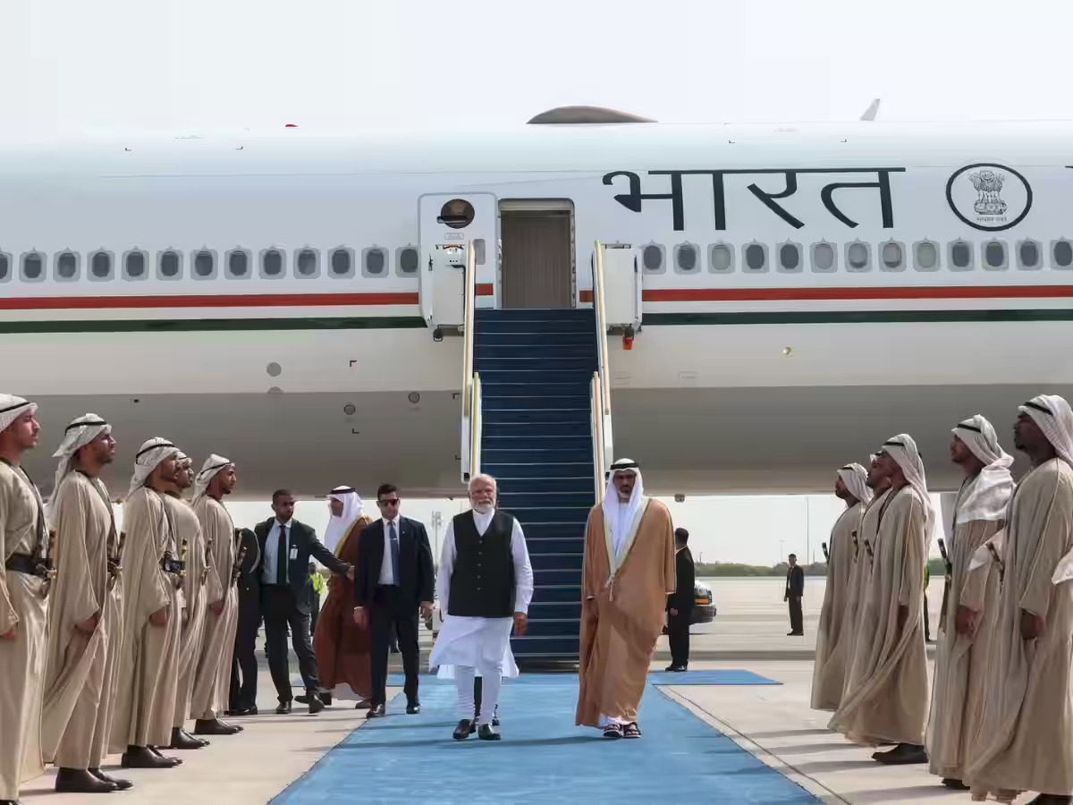 प्रधानमंत्री के आगमन पर, उन्हें विशेष सम्मान प्रकट करते हुए अबू धाबी के क्राउन प्रिंस महामहिम शेख खालिद बिन मोहम्मद बिन जायद अल नाहयान ने हवाई अड्डे पर प्रधानमंत्री का गर्मजोशी से स्वागत किया। प्रधानमंत्री मोदी का औपचारिक स्वागत किया गया और उन्हें गार्ड ऑफ ऑनर दिया गया।