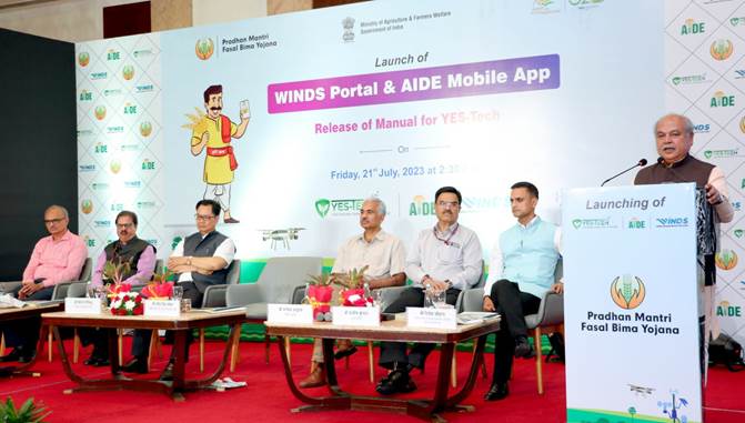 नई दिल्ली, 22 जुलाई। केंद्र की महत्वाकांक्षी प्रधानमंत्री फसल बीमा योजना (पीएमएफबीवाई) में किसानों को और अधिक सुविधा देते हुए सटीक उपज अनुमान एवं पंजीकरण प्रक्रिया को सुव्यवस्थित करने के लिए केंद्रीय कृषि एवं किसान कल्याण मंत्रालय ने तीन महत्वपूर्ण पहलों- येस्टेक (प्रौद्योगिकी पर आधारित उपज अनुमान प्रणाली), विंड्स (मौसम सूचना डेटा सूचना प्रणाली) और एआईडीई (मध्यस्थ नामांकन के लिए ऐप) को किसानों को समर्पित किया। कार्यक्रम में केंद्रीय कृषि एवं किसान कल्याण मंत्री नरेंद्र सिंह तोमर तथा केंद्रीय पृथ्वी विज्ञान मंत्री किरेन रिजिजू विशेष रूप से उपस्थित थे। इस मौके पर केंद्र सरकार ने महत्वपूर्ण नीतिगत निर्णय के तहत, राज्यांश लंबित होने से किसानों को क्लेम मिलने में होने वाली कठिनाइयों से राहत प्रदान करते हुए 8 राज्यों के लगभग 5.60 लाख लाभार्थी किसानों को अपने स्तर पर 258 करोड़ रु. बतौर क्लेम जारी किए। इनमें गुजरात, महाराष्ट्र, मध्य प्रदेश, राजस्थान, छत्तीसगढ़, असम, ओडिशा व आंध्र प्रदेश के किसान शामिल हैं।