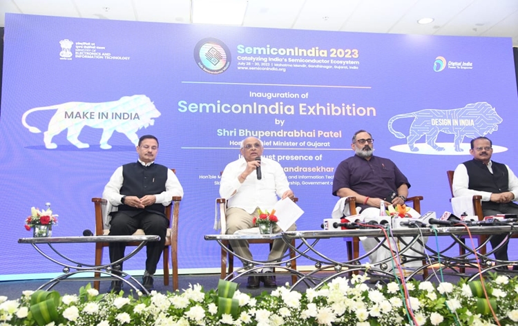 गांधीनगर, 25 जुलाई। गुजरात के मुख्यमंत्री भूपेन्द्र पटेल ने आज गांधी नगर के महात्मा मंदिर में सेमिकॉन इंडिया प्रदर्शनी का उदघाटन किया। इलेक्ट्रॉनिक्स और सूचना प्रौद्योगिकी राज्य मंत्री राजीव चंद्रशेखर भी इस अवसर पर उपस्थित थे। प्रदर्शनी के उदघाटन के बाद राजीव चंद्रशेखर ने संवाददाताओं को बताया कि भारत ने सेमीकंडक्टर विनिर्माण के क्षेत्र में बडी उपलब्धि हासिल की है। उन्होंने कहा कि राज्य सरकार के नीतिगत प्रयासों और गुजरात में सेमीकंडक्टर बनाने वाली बडी कंपनियों के आने से राज्य सेमीकंडक्टर नवाचार का प्रमुख केंद्र बन गया है।