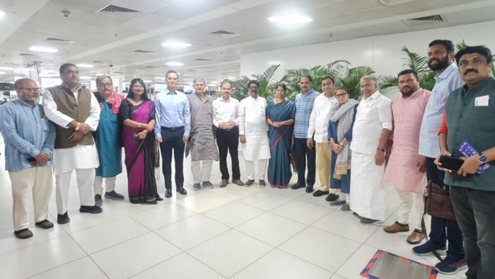 नई दिल्ली, 29 जुलाई। कर्नाटक के बंगलुरु इंटरनेशनल एयरपोर्ट पर राज्यपाल थावर चंद गहलोत को लिए बिना ही एयर एशिया की फ्लाइट ने हैदराबाद के लिए उड़ान भर ली। मामले को लेकर राज्यपाल की प्रोटोकॉल टीम के एक अधिकारी ने बताया कि समय से पहले ही राज्यपाल VVIP लाउंज में इंतजार कर रहे थे। जब तक वह लाउंज से रनवे पर पहुंचे, तब तक विमान हैदराबाद के लिए रवाना हो चुका था। फिर गवर्नर 90 मिनट इंतजार के बाद दूसरी फ्लाइट से गए।
