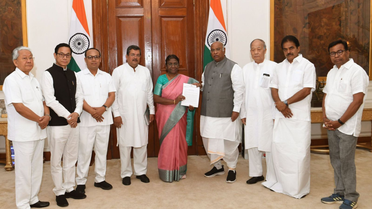 मणिपुर मुद्दे को लेकर विपक्षी दल के नेताओं ने राष्ट्रपति मुर्मू से की मुलाकात, हस्तक्षेप का किया आग्रह