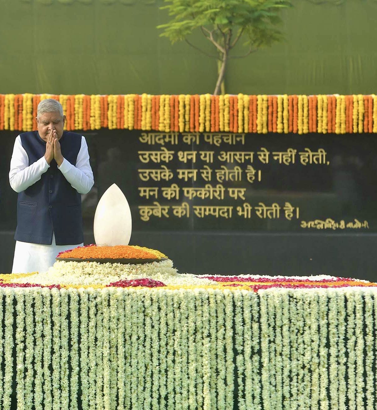 Hon'ble Vice-President, Shri Jagdeep Dhankhar attended a prayer meeting in the memory of former Prime Minister, Shri Atal Bihari Vajpayee Ji and paid floral tributes at 'Sadaiv Atal' today. #AtalBihariVajpayeeJi pic.twitter.com/3GCs5U6IdH