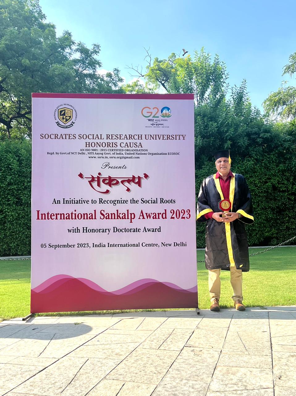 नई दिल्ली, 6सितंबर। राजस्थान कैडर आईपीएस पंकज चौधरी को नई दिल्ली में टीचर्स डे के उपलक्ष्य पर डॉक्टरेट की डिग्री से सम्मानित किया गया। चौधरी इंजीनियर,डॉक्टर,वकालत,ऑडिटर,आईपीएस के अलावा राजनीति में भी उतर चुके है।