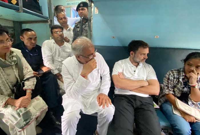 बिलासपुर जिले के तखतपुर विकासखंड के परसदा गांव में राज्य सरकार के कार्यक्रम आवास न्याय सम्मेलन में शामिल होने के बाद गांधी बिलासपुर रेलवे स्टेशन पहुंचे और इंटरसिटी एक्सप्रेस ट्रेन में सवार हुए. उनके साथ मुख्यमंत्री भूपेश बघेल, पार्टी की प्रदेश प्रभारी कुमारी शैलजा, प्रदेश अध्यक्ष दीपक बैज और अन्य नेता थे. कांग्रेस द्वारा साझा की गई तस्वीरों में गांधी यात्रियों से बातचीत करते नजर आ रहे हैं. ट्रेन शाम पौने छह बजे रायपुर पहुंची .