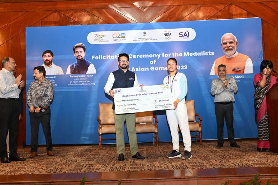 अनुराग सिंह ठाकुर ने निशानेबाजी, नौकायन, वुशु, टेनिस के एशियाई खेलों के पदक विजेताओं को सम्मानित किया और नकद पुरस्कार किए प्रदान