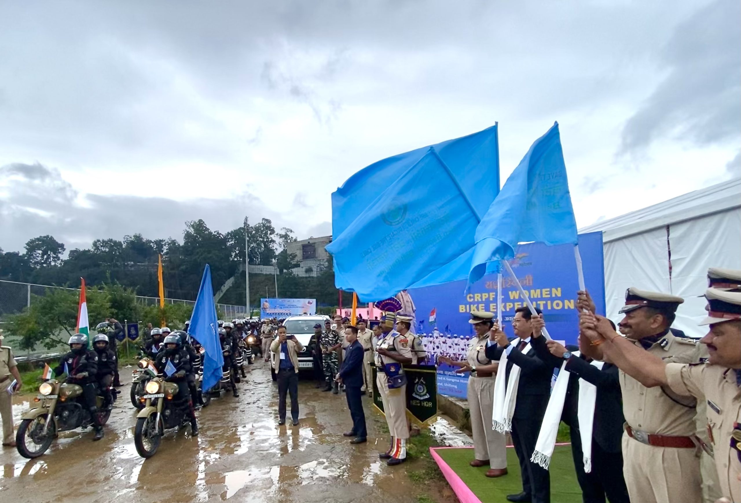 मेघालय के मुख्यमंत्री कोनराड के संगमा ने शिलांग में सीआरपीएफ महिला बाइक अभियान ‘यशस्विनी को दिखाई हरी झंडी