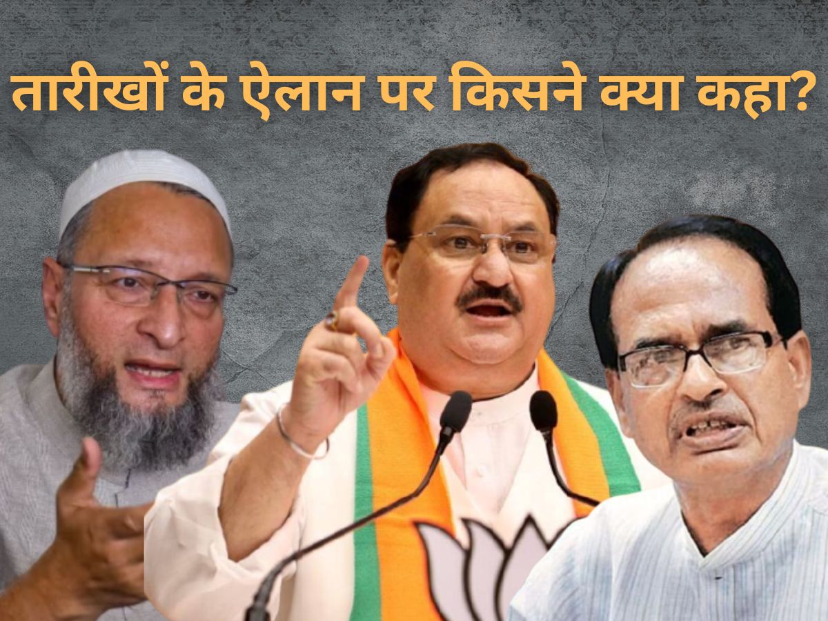 विधानसभा चुनावों की तारीखों का ऐलान होते ही आने लगे नेताओं के रिएक्शन , नड्डा और ओवैसी ने दिए यह बयान