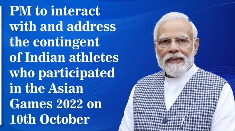 प्रधानमंत्री 10 अक्टूबर को एशियाई खेल 2022 में भाग लेने वाले भारतीय एथलीटों के दल के साथ बातचीत करेंगे और उन्हें करेंगे संबोधित