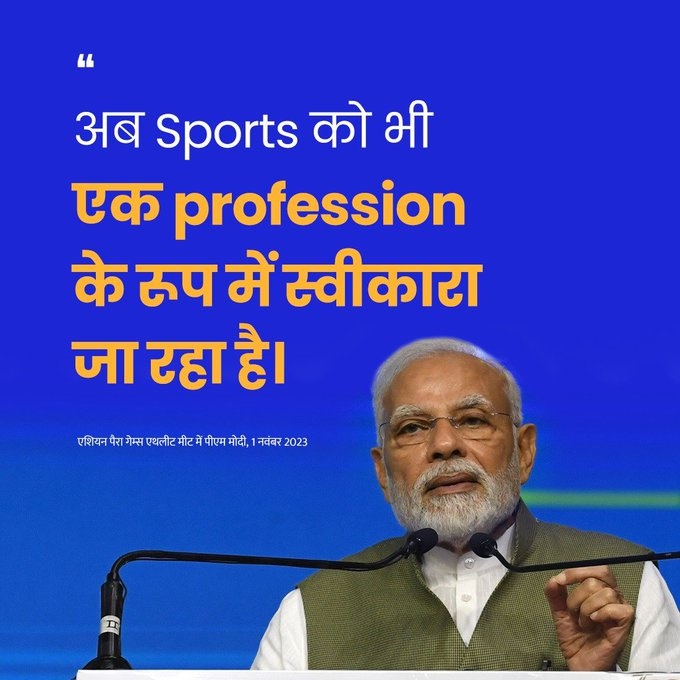 प्रधानमंत्री ने बीते कुछ महीनों के दौरान खेल के क्षेत्र में भारत की हालिया उपलब्धियों पर प्रकाश डाला और कहा, “पैरा एशियाई गेम्स में आपकी सफलता सोने पर सुहागा है।” उन्होंने अगस्त में बूडापेस्ट में हुई वर्ल्ड एथलेटिक्स चैम्पियनशिप में स्वर्ण पदक, एशियाई खेलों में बैडमिंटन पुरुष टीम का पहला स्वर्ण पदक, टेबल टेनिस में महिला जोड़ी का पहला पदक, पुरुष बैडमिंटन टीम की थॉमस कप जीत, एशियन गेम्स में 28 स्वर्ण सहित रिकॉर्ड 107 पदकों और एशियाई पैरा गेम्स में सबसे सफल पदक तालिका का उल्लेख किया।
