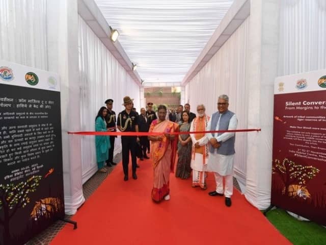 नई दिल्ली,4नवंबर। भारत की राष्ट्रपति द्रौपदी मुर्मु ने शुक्रवार को नई दिल्ली में “साइलेंट कन्वर्सेशन: फ्रॉम मार्जिन्स टू द सेंटर” नामक एक कला प्रदर्शनी का उद्घाटन किया। इस प्रदर्शनी का आयोजन राष्ट्रीय बाघ संरक्षण प्राधिकरण द्वारा सांकला फाउंडेशन के सहयोग से प्रोजेक्ट टाइगर के 50 वर्ष पूरे होने का उत्सव मनाने के लिए किया जा रहा है।