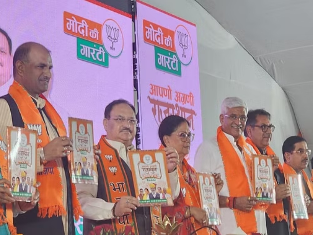 जयपुर, 16नवंबर। भाजपा ने राजस्थान विधानसभा चुनाव के लिए अपना घोषणापत्र (संकल्प पत्र) बृहस्पतिवार को जारी किया जिसमें युवाओं को पांच साल में 2.50 लाख सरकारी नौकरी देने का वादा किया गया है. भाजपा के राष्ट्रीय अध्यक्ष जगत प्रकाश नड्डा ने यहां ‘आपणो अग्रणी राजस्थान संकल्प पत्र-2023’ का विमोचन किया. इस अवसर पर उन्होंने कहा कि राज्य में भाजपा की सरकार बनने पर परीक्षापत्र लीक व अन्य घोटालों की जांच के लिए विशेष जांच दल (एसआईटी) गठित किया जाएगा. नड्डा ने कहा, ‘‘हमारी सरकारी यह सुनिश्चित करेगी कि ऐसे मामलों में दोषियों को दंड मिले.’