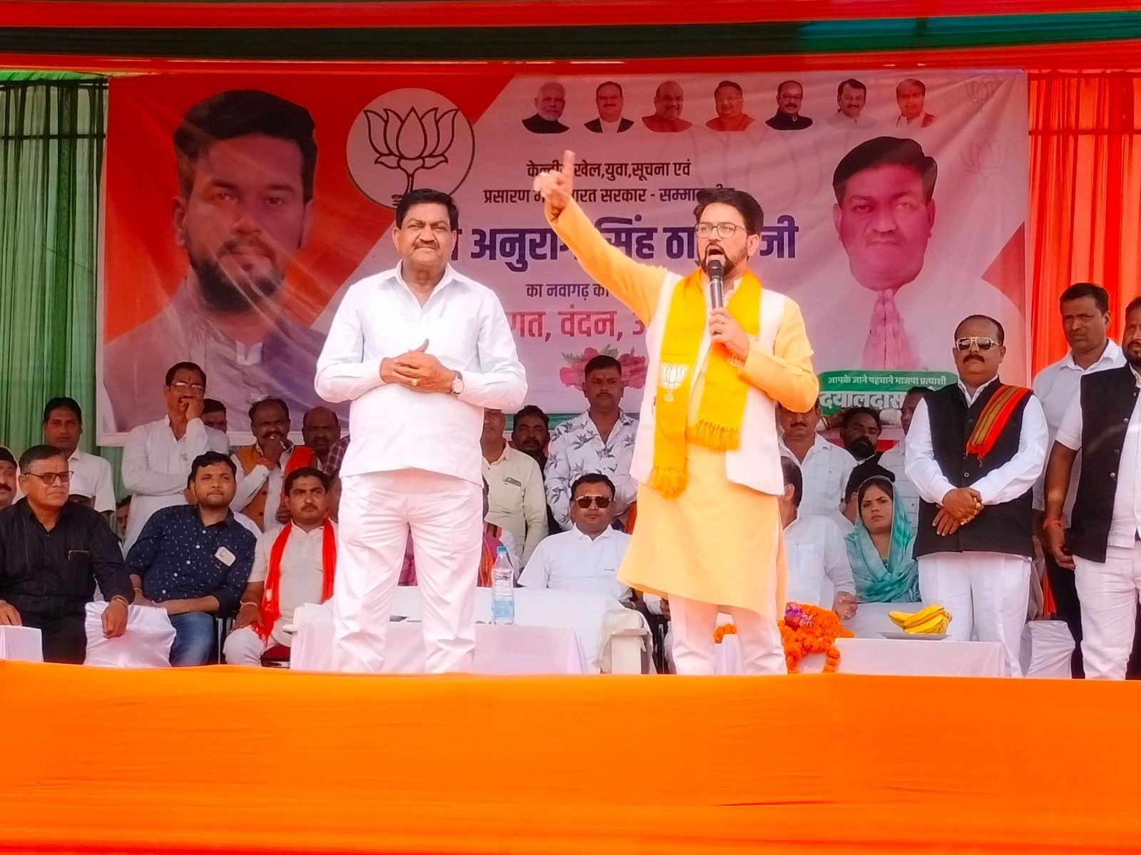 रायपुर, 17नवंबर। केंद्रीय सूचना एवं प्रसारण और युवा एवं खेल मामलों के मंत्री अनुराग सिंह ठाकुर आगामी विधानसभा चुनाव में भारतीय जनता पार्टी के पक्ष में प्रचार हेतु दो दिनों के छत्तीसगढ़ प्रवास पर हैं। गुरूवार को उन्होंने नवागढ़ और वैशालीनगर में भाजपा प्रत्याशियों के पक्ष में जन समर्थन जुटाने हेतु विशाल जनसभाओं को संबोधित किया।