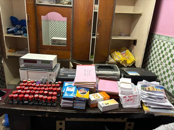 पकड़े गए व्यक्तियों में से एक, जोकि मेसर्स एम.के. ट्रेडर्स का मालिक था, पांच करोड़ से अधिक की धोखाधड़ी वाली आईटीसी का लाभ उठाने के कार्य में लिप्त पाया गया, जिसका बड़ा हिस्सा अन्य जुड़े लिंकों को दे दिया गया था। पकड़े गए अन्य दो व्यक्ति इस सिंडिकेट को सहायता व बढ़ावा दे रहे थे और सिंडिकेट के कामकाज में सहायक थे। इस अभियान के दौरान 55 अलग-अलग फर्मों से संबंधित टिकट, कई सिम कार्ड एवं आधार कार्ड जैसे दस्तावेज और तीसरे पक्ष से संबंधित बिजली बिल सहित आपत्तिजनक सामग्री बरामद की गई।