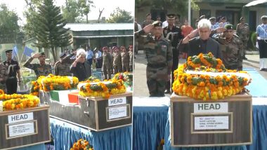 नई दिल्ली, 24नवंबर। जम्मू के राजौरी जिले के कालाकोट में बुधवार को हुए एनकाउंटर में 2 सेनाधिकारी और 3 जवान शहीद हो गए. आज शुक्रवार को एनकाउंटर में शहीद हुए 5 जवानों को जम्मू-कश्मीर के उपराज्यपाल मनोज सिन्हा और सेना ने श्रद्धांजलि दी.