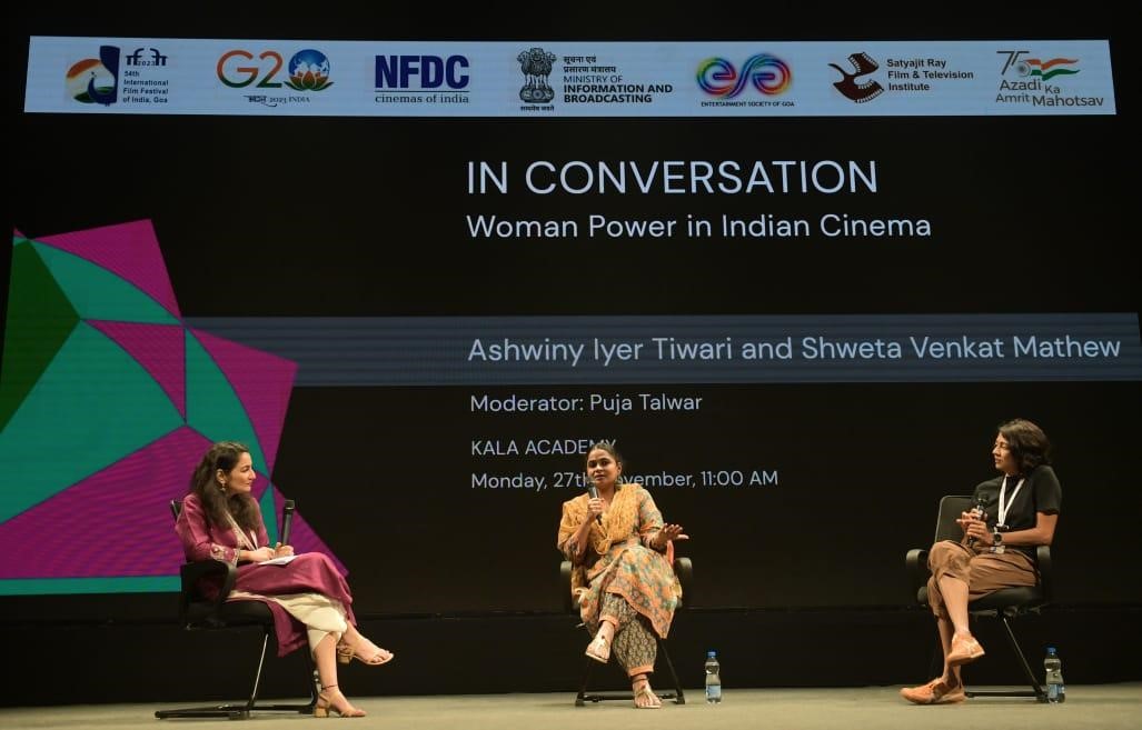 भारतीय अंतर्राष्ट्रीय फिल्म महोत्सव (इफ्फी) में आज ‘भारतीय सिनेमा में महिला शक्ति’ विषय पर आयोजित ‘इन कन्वरसेशन’ सत्र में इस पैने सवाल का जवाब तलाशने का प्रयास किया गया। कलाकार, फिल्म निर्माता और लेखिका अश्विनी अय्यर तिवारी और फिल्म संपादक श्वेता वेंकट मैथ्यू, प्रसारण पत्रकार और पूर्व संपादक, एनडीटीवी पूजा तलवार द्वारा संचालित इस प्रेरक वार्तालाप में सम्मिलित हुईं।