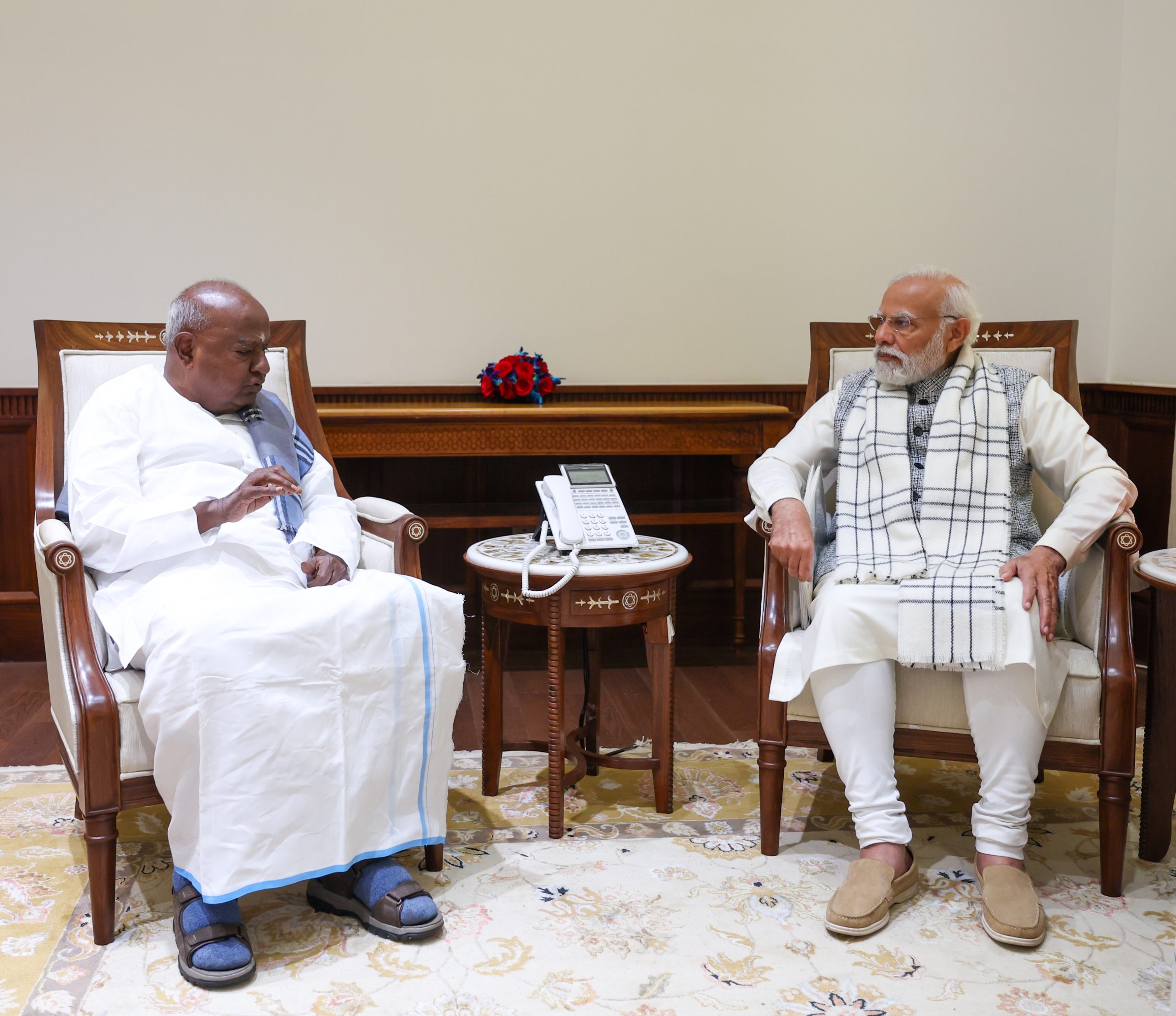 प्रधान मंत्री ने एक्स पर पोस्ट किया:”पूर्व प्रधानमंत्री श्री एचडी देवेगौड़ा, श्री एचडी कुमारस्वामी जी और श्री एचडी रेवन्ना जी से मिलकर सर्वदा प्रसन्नता होती है।