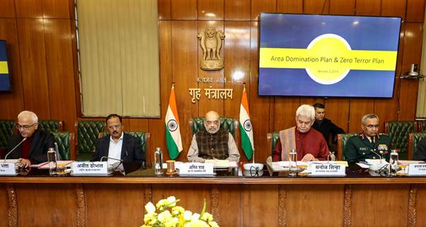 बैठक के दौरान अमित शाह ने जम्मू और कश्मीर में आतंकवाद के खात्मे के लिए सुरक्षा एजेंसियों के एरिया डॉमिनेशन प्लान की समीक्षा की। सिक्योरिटी ग्रिड और जम्मू और कश्मीर के सुरक्षा परिदृश्य की समीक्षा करते हुए शाह ने आतंकवादरोधी अभियानों को मजबूत करने और आतंकियों के पारिस्थितिकी तंत्र को पूर्ण रूप से समाप्त करने की आवश्यकता पर बल दिया। उन्होंने सुरक्षा एजेंसियों को संवेदनशील क्षेत्रों में उचित तैनाती की सलाह दी। उन्होंने प्रधानमंत्री नरेन्द्र मोदी जी के नेतृत्व में केन्द्र सरकार द्वारा आतंकवाद के खिलाफ ज़ीरो टॉलरेंस की नीति जारी रखने की बात दोहराई।