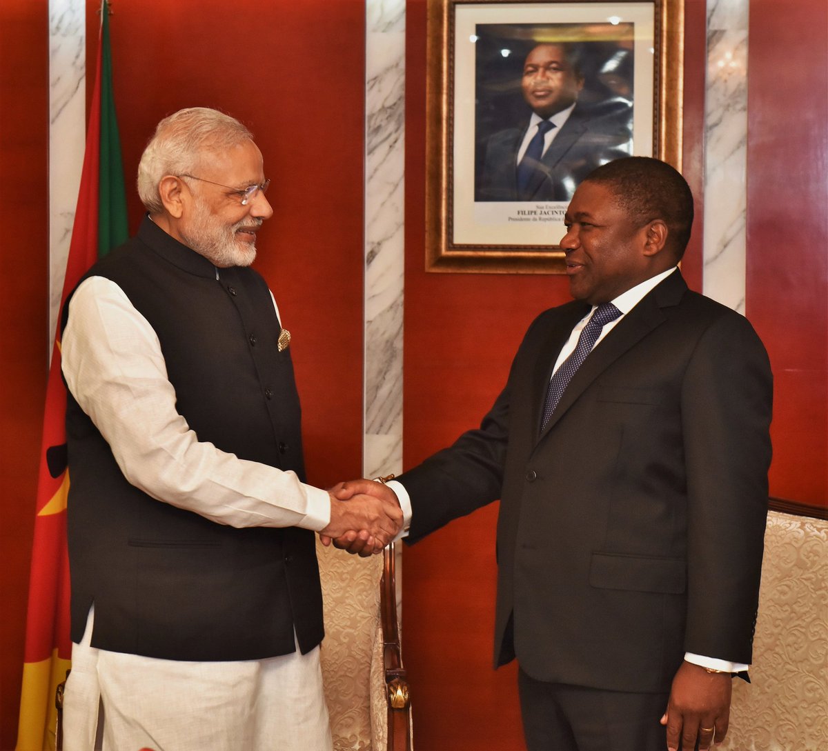 प्रधानमंत्री मोदी ने मोज़ाम्बिक की विकास प्राथमिकताओं का समर्थन करने के लिए अपनी प्रतिबद्धता व्यक्त की। दोनों नेताओं ने रक्षा, आतंकवाद विरोधी, ऊर्जा, स्वास्थ्य, व्यापार और निवेश, कृषि, जल सुरक्षा, खनन, क्षमता निर्माण और समुद्री सहयोग सहित द्विपक्षीय संबंधों को आगे बढ़ाने के तरीकों पर सार्थक चर्चा की। प्रधानमंत्री ने सुझाव दिया कि दोनों देश व्यापार, संस्कृति और लोगों के बीच संबंधों को बढ़ावा देने के लिए हवाई संपर्क बढ़ाने पर काम कर सकते हैं।