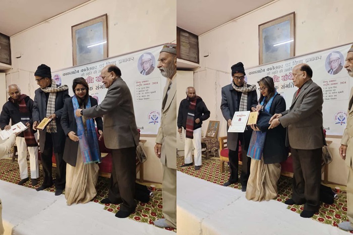 नई दिल्ली, 21 जनवरी। काका कालेलकर और विष्णु प्रभाकर की स्मृति में 20 जनवरी 2024 को सन्निधि संगोष्ठी के 100 पूर्ण होने के उपलक्ष्य में शतक संगति का आयोजन गांधी हिंदुस्तानी साहित्य सभा, नई दिल्ली में किया गया.जिसके मुख्य अतिथि के विश्व प्रसिद्ध कवि सुरेंद्र शर्मा रहे, जबकि कार्यक्रम की अध्यक्षता वरिष्ठ पत्रकार मुकेश भारद्वाज ने की. विशिष्ठ अतिथि के रूप में डीयू के डॉ.गोपेश्वर सिंह मौजूद रहे.कार्यक्रम का संचालन प्रसून लतांत व अर्चना प्रभाकर ने किया।कार्यक्रम के मुख्य अतिथि प्रसिद्ध हास्य कवि सुरेंद्र शर्मा ने कहा कि सन्निधि संगोष्ठी का आयोजन साहित्य की विभिन्न विधाओं से जुड़े विभूतियों को सम्मानित करने के लिए किया जाता रहा है।