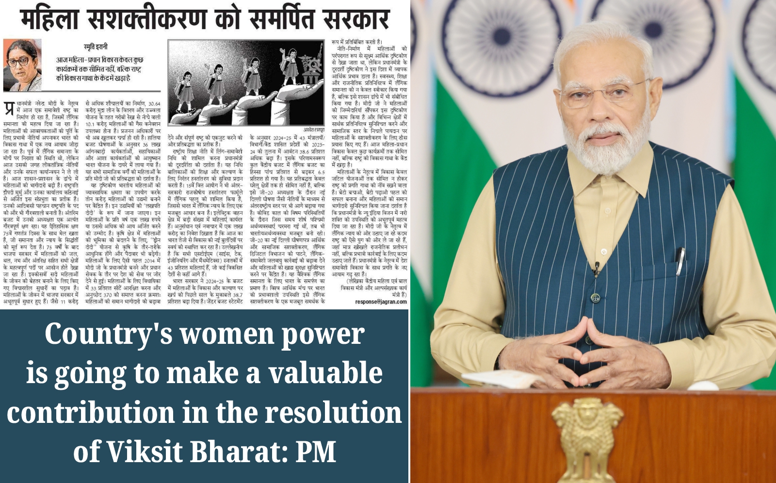 “महिला नेतृत्व में विकास को लेकर हमारी सरकार प्रतिबद्ध है। ‘विकसित भारत’ के संकल्प में देश की नारीशक्ति का बहुमूल्य योगदान होने जा रहा है। स्मृति इरानी जी ने अपने आलेख में इसी भावना को प्रकट किया है।”