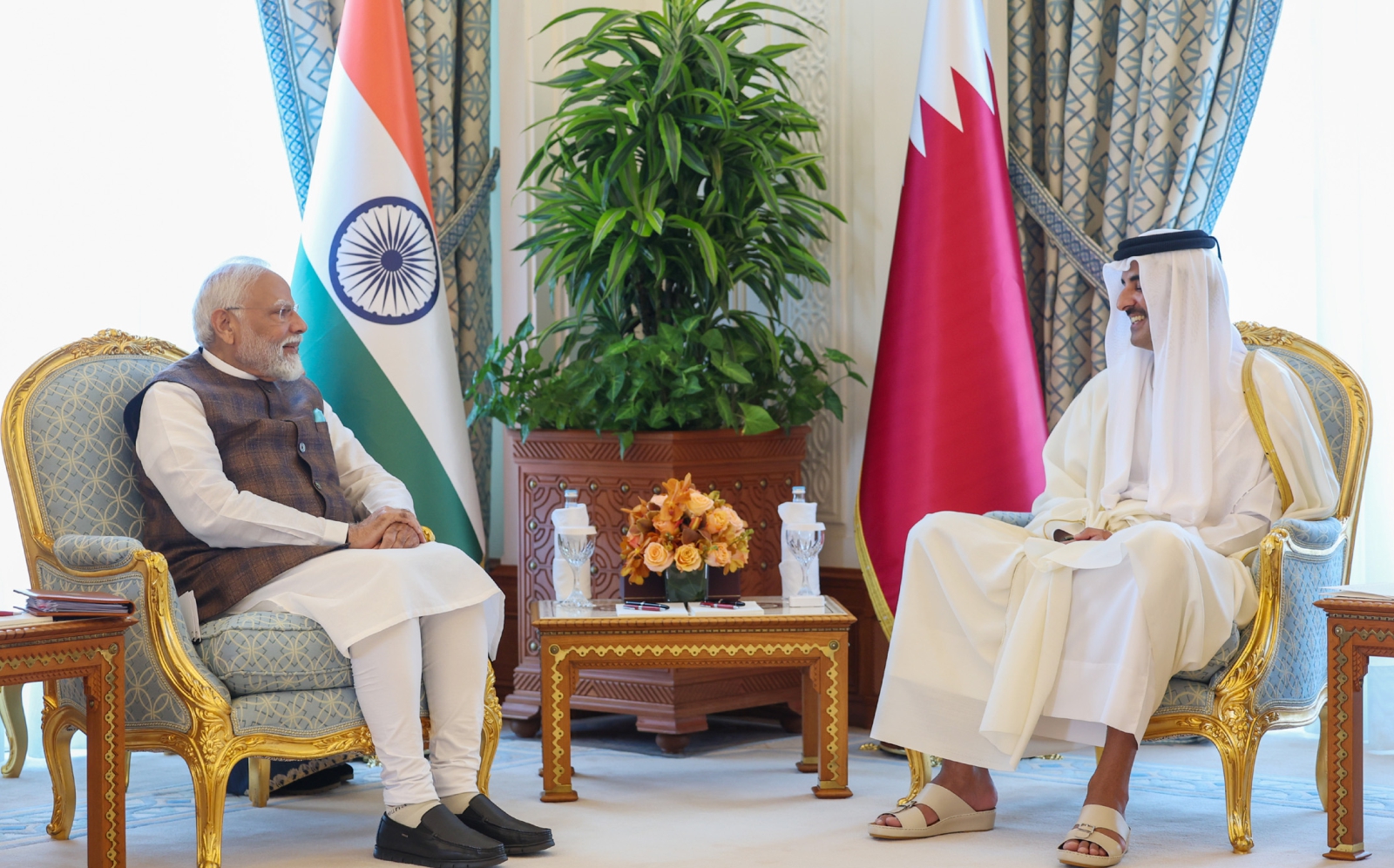 प्रधानमंत्री के आगमन पर अमीरी पैलेस में उनका औपचारिक स्वागत किया गया। इसके बाद दोनों पक्षों ने प्रतिनिधिमंडल स्तर की तथा सीमित वार्ताएं कीं। वार्ताओं के दौरान आर्थिक सहयोग, निवेश, ऊर्जा साझेदारी, अंतरिक्ष सहयोग, शहरी बुनियादी ढांचे, सांस्कृतिक संबंध और दोनों देशों के लोगों के बीच पारस्परिक संबंधों सहित कई विषयों पर चर्चा हुई। दोनों नेताओं ने क्षेत्रीय और वैश्विक मुद्दों पर भी विचारों का आदान-प्रदान किया।